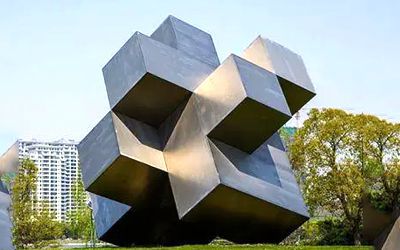 因不銹鋼塑形相對困難,抽象是不銹鋼雕塑最主要的一種表現形式,常見的抽象形式有:幾何塊面(切面)、編織網格、剪影等。